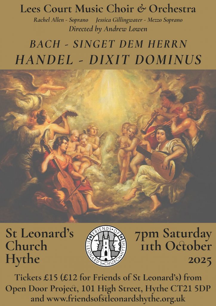Saturday 11 October 7.00pm | £15 [Friends £12] | Lees Court Music | Bach – Singet dem Herrn Handel – Organ Concerto, Op 4 No 4 Handel – Dixit Dominus |